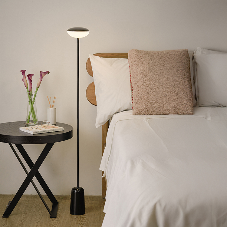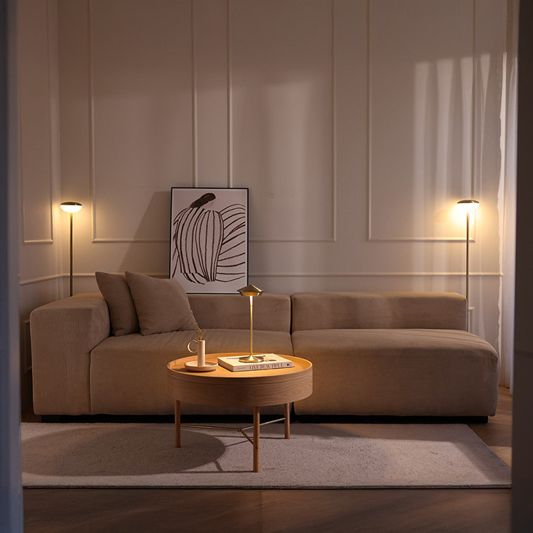 雖是移動燈具,Pinot Floor隨附的USB-C充電線,線長和一般標準立燈電源線的長度相同,若你為Pinot Floor在家居生活裡,找到了能長久安置的角落,它也可以作為一般立燈使用。金屬燈罩下方便是三段觸摸開關,不讓突兀的開關影響整體造型。